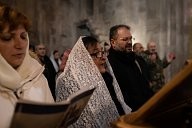 Armenia - Gandzasar Monastery - Armenian Christmas - The first faithful to arrive begin a first prayer before the great mass.