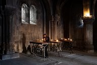 Armenia - Gandzasar Monastery - Armenian Christmas - Inside the monastery, the first faithful light candles for their prayers.