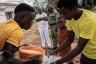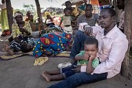 Displaced persons camp Deslocados de 25 junho / Two men are eating. The one on the right, particularly thin, almost died of malnutrition a few months ago. The United Nations warned of the coming danger of possible famines.