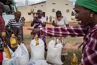 Displaced camp Deslocados de 25 junho / Women come to get water from the tap. In this camp, only 16 taps are available for 33,000 inhabitants. Sometimes women fight to get water.
