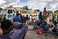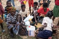 Ntele camp / This camp shelters the last arrivals from Palma by road. Most of them are traumatized, especially the women whose family members have been massacred or abducted. Displaced people in front of the MSF tent.