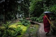 September 17, 2016: Nalanda monk walking in the Zen garden of Ryumon-Ji Monastery, founded in 1999 by Zen master Olivier Reigen Wang-Genh, vice president of the Buddhist Union of France. Weiterswiller (67), France.