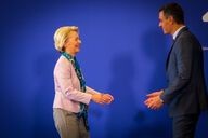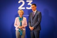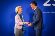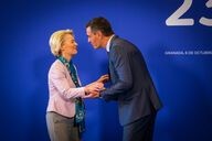 Pedro Sanchez and Ursula Von Der Leyen. The various European heads of state met at an informal summit of the European Economic Community.