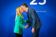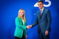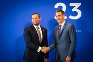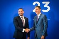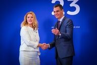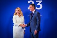 Evika Siliņa with Pedro Sanchez. The various European heads of state met at an informal summit of the European Economic Community.