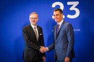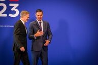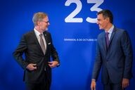 Ulf Kristersson with Pedro Sanchez. The various European heads of state met at an informal summit of the European Economic Community.