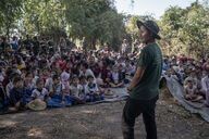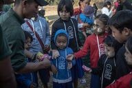 At the end of their ceremony, the FBRs get the children and adults of displaced persons to run together with flags from all over the world, as a sign of universal support.