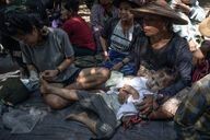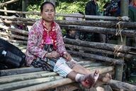 A first displaced person injured in the foot by a Burmese regime bombardment.