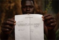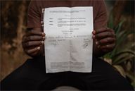 Bamissa Dembele, 24, of Malian nationality, with the documents for his asylum application filed on November 11, 2022, aboard the OCEAN VIKING. He poses here in Bamako, Mali, on December 19, 2022, following his expulsion and rerouting to his country of origin, after his application to enter French territory was rejected.