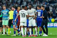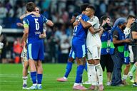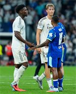 Aurelien Tchouameni of Real Madrid CF and Igor Paixao of Olympique de Marseille congrats at the end of the match during the UEFA Champions League match between Real Madrid CF and Olimpique Marsella, on September 16, 2025