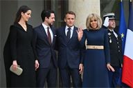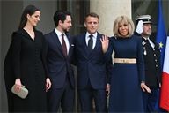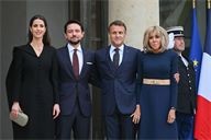 The President of the Republic, Emmanuel Macron, and his wife, Brigitte Macron, hosted the Crown Prince of the Kingdom of Jordan, Hussein bin Abdullah, and his wife, Princess Rajwa Al Hussein, for a working lunch at the Élysée Palace on 8 October 2025.