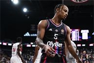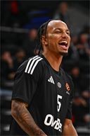 Justin Robinson (PG) #5 during the Euroleague match between Paris Basket and Baskonia Vitoria-Gasteiz at the Adidas Arena on 15 October 2025.