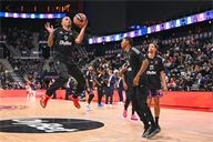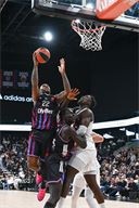 Baskonia players in attack during the Euroleague match between Paris Basket and Baskonia Vitoria-Gasteiz at the Adidas Arena on 15 October 2025.