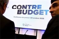 Press conference on the alternative budget (PLF2026) by Marine Le Pen and Jean-Philippe Tanguy at the Maison de la Chimie in Paris on 23 October 2025.