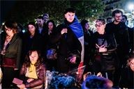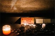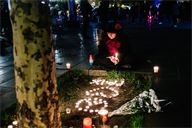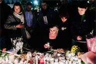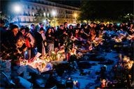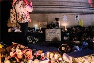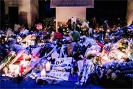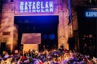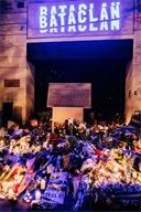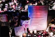 Tributes in front of the Bataclan theatre to the victims of the Paris attacks, which occurred ten years earlier, on 13 November 2015.