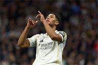 Jude Bellingham of Real Madrid CF celebrates his goal during the UEFA Champions League match between Real Madrid CF and AS Monaco FC at Bernabeu stadium on January 20, 2026.