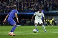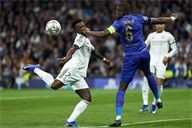 Vinicius Junior of Real Madrid CF battles for the ball with Denis Zakaria of AS Monaco FC during the UEFA Champions League match between Real Madrid CF and AS Monaco FC at Bernabeu stadium on January 20, 2026.