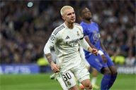 Franco Mastantuono of Real Madrid CF celebrates his goal during the UEFA Champions League match between Real Madrid CF and AS Monaco FC at Bernabeu stadium on January 20, 2026.