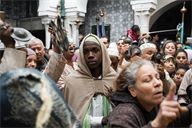 Riadh is in a trance with the spirit of Sidi Abdessalem at the Sidi Ali Lasmar zawiya in the Medina of Tunis. This spirit always appears at the beginning of the ceremony. He is one of the most important Muslim saints in the ritual. With fire, he blesses the followers and predicts their future to advise them. The stambali has been able to endure by adapting to Muslim religious practices. The ritual venerates both Muslim saints and African spirits.