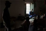 Master musician Salah Ouargli begins playing the music of the spirit Doudou Brahim while a woman enters a trance. Salah is one of the last three musicians who still play the stambali. Sanctuary of Sidi Ali Lasmar, Tunis.