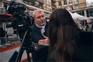 Jean-Paul Lecocq campaigning at the Coty market gives an interview to France 3 Normandie