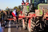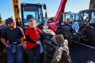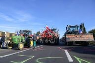 A convoy of Coordination Rurale tractors set up outside the Porte de Versailles exhibition centre, where the Salon de l'Agriculture is being held.