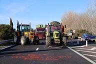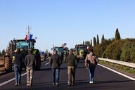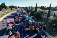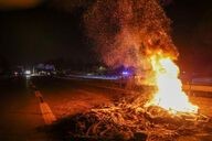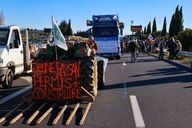 Farmers demonstrate and block freeways in France here on the A54 near Salon de Provence