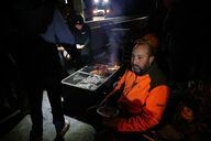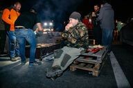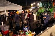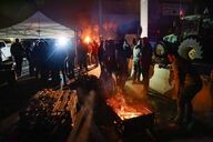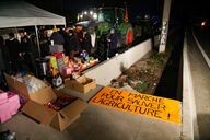 Farmers demonstrate and block freeways in France here on the A51 near Aix-en-Provence, at night farmers organize themselves and take turns to hold out.
