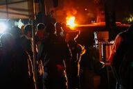 farmers protest with freeway blockades in France here on the A51 night with farmers