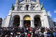 Rescuers intervene as the faithful gather in Square Louise Michel to attend the Way of the Cross of the Archbishop of Paris, Mgr Laurent Ulrich Paris, at the Sacré Coeur, April 18, 2025