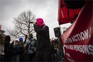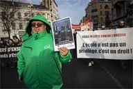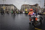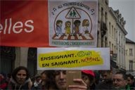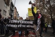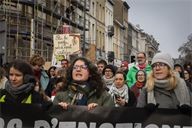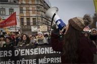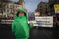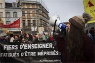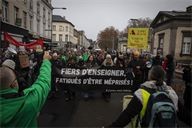 A procession of teachers marched today between the Arts et Métiers and the Pensions Tower (Gare du Midi). The action ended with speeches and a concert. In the context of a three-day general national strike in Belgium, the civil service took action on the second day, before the cultural sector took over on the third day.
