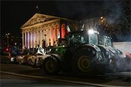 Hundreds of tractors belonging to the FNSEA, Young Farmers and the FNSDA gathered in front of the National Assembly in Paris on 13 January 2026 to protest against Mercosur.