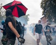 Tension between demonstrators and law enforcement during the demonstration in the streets of Toulouse for the inter-union strike on 18 September 2025.
