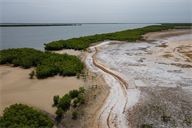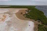 Salt evaporation ponds in Kaolack in the Sine Saloum region of Senegal, on December 13, 2025. Salt from the Sine Saloum represents a significant part of the regional economy in addition to being the most important salt-producing region in West Africa.