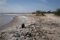 Thousands of pieces of plastic waste washed up on a beach along the Saloum River in Kaolack, Senegal, on December 13, 2025.