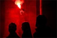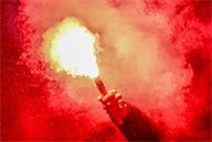 A friend of Quentin's lights a smoke bomb at the end of his speech in memory of the struggles they shared.