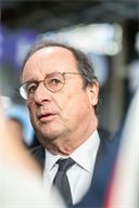 Portrait of FranƧois Hollande, socialist MP and former President of the Republic, looking pensive during his visit to the 2025 Mayors' Exhibition. 19 November 2025. Paris, France.