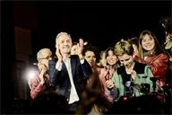 Emmanuel Gregoire, elected mayor of Paris, celebrates his victory in front of the City Hall.