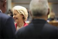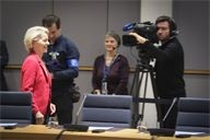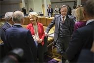 Ursula Von Der Leyen. Round table discussion between European heads of state during the extraordinary summit in the Belgian capital.