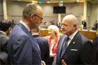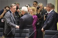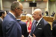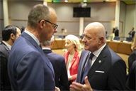 Christian Stocker (R). Round table discussion between European heads of state during the extraordinary summit in the Belgian capital.