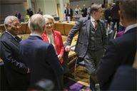 Round table discussion between European heads of state during the extraordinary summit in the Belgian capital.