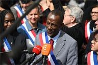 Bally Bagayoko, the new Mayor of Saint-Denis, at the “Citizens’ Rally” against racism in Saint-Denis on 4 April 2026.