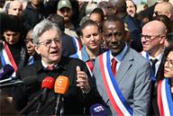 Jean-Luc Melenchon and Bally Bagayoko, the new Mayor of Saint-Denis, at the “Citizens’ Rally” against racism in Saint-Denis on 4 April 2026.