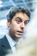 Portrait of Gabriel Attal looking surprised with his mouth open, former Prime Minister under Emmanuel Macron and Member of Parliament for Hauts-de-Seine, President of the Ensemble pour la RƩpublique group in the National Assembly. 19 November 2025. Paris, France.