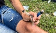 a young person injects cocaine intravenously. in the triangle Gare St Charles, Belsunce, Porte d'Aix drugs are more and more visible, deal points, on street corners, drug addicts who inject themselves or smoke crack in the middle of the street in broad daylight, used syringes strewn the sidewalks, the hyper tourist center of Marseille has become a drug hub.