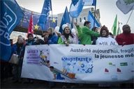 Between 5,000 and 7,000 people demonstrated today in the Belgian capital to protest against the austerity measures decided by the Wallonia-Brussels Federation and the Arizona government.