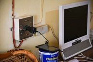 Ekuhlehleni, Illegal connection to the new electricity grid and advertising to denounce electricity theft.