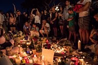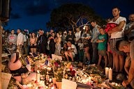 Nice on 15 July 2016. At nightfall very many people spontaneously gathered at the Meridian Hotel on the Promenade to honor the victims . People who came alone , with family, or with their children have placed flowers , candles, but also messages. Peace messages It read for relatives who died the night before or just sending a prayer to all deceased. A very strong emotion emanated during this meditation on the Promenade des Anglais in the aftermath of the terrorist attack that killed 84 and wounded more than 200 of which 18 are still in an absolute emergency condition four days after the tragedy. The attack was claimed the next day by the Islamic State