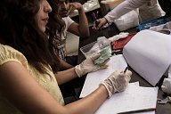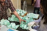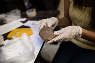 Archeology students, under the aegis of Maamoun Abdulkarim, at the National Museum of Damascus, work, sort and classify the various objects sent from Syrian regions. Most objects are damaged and require restoration. Damascus. Sept 2015