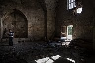 The head of the Damascus fortress, Edmond El Ajji, explains that mortars hit the roof of this one in August 2015. Damascus. September 2015.
