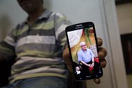 Khalil Al Hariri is holding a photo of Khaled el-Assad, a family member. Damascus. September 2015.